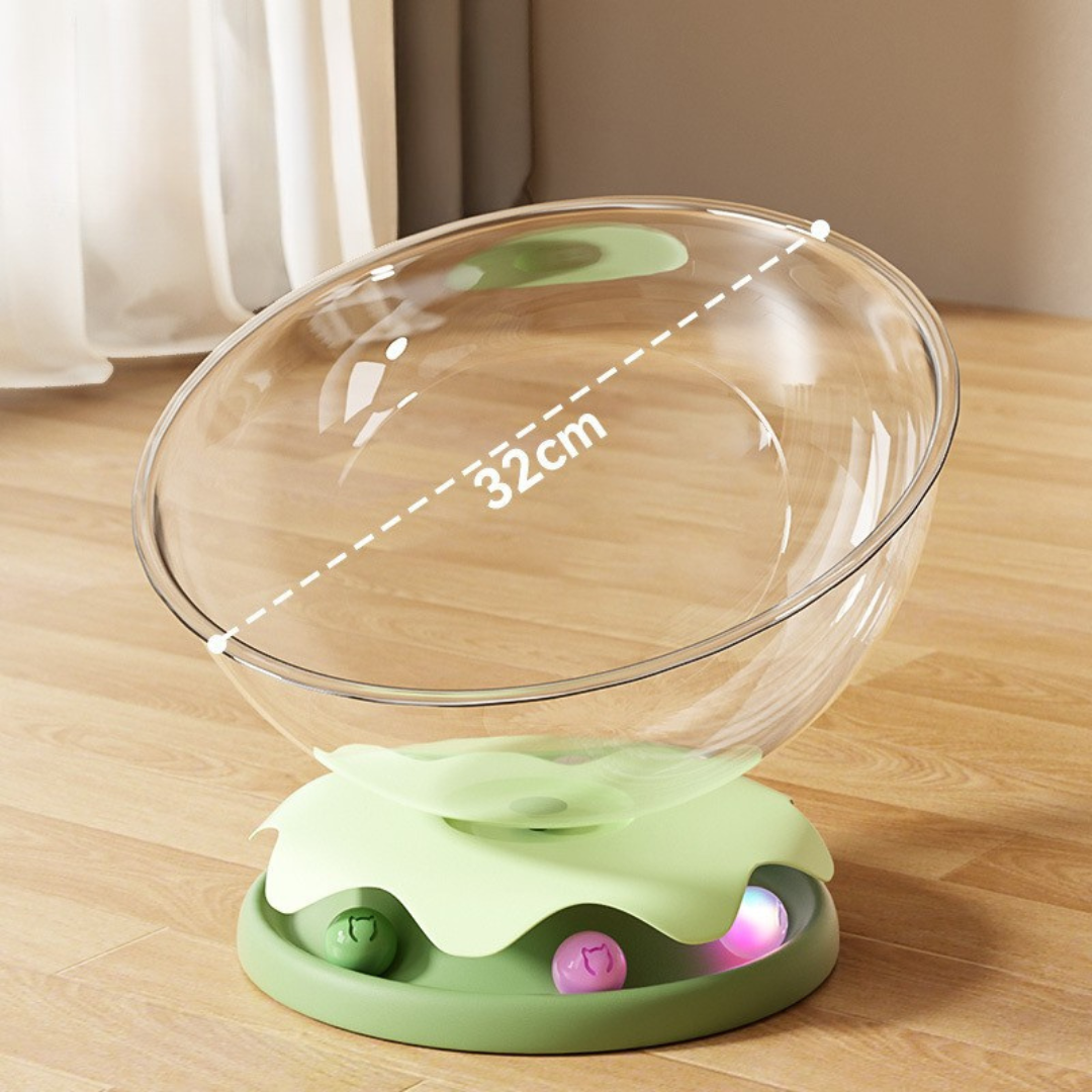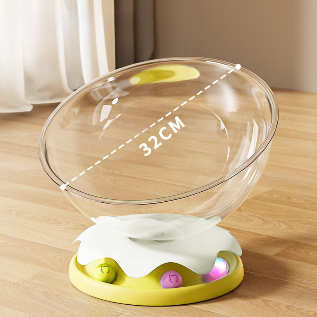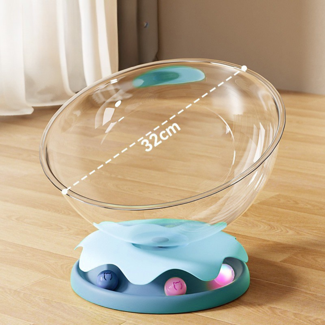 The integrated turntable adds gentle play and movement, stimulating instincts while keeping nervous or curious cats mentally engaged.